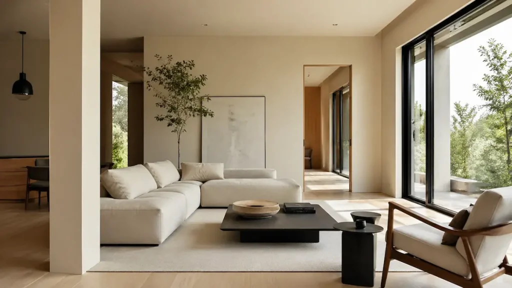 En la práctica es sencillo: si eliges arena, necesitas algo que lo active. Puede ser madera más oscura, negro, verde, o incluso texturas que rompan la uniformidad.