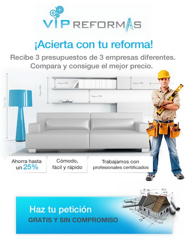 La única manera de ahorrar dinero en una reforma es comparando presupuestos. Esta es una tarea que muchas personas prefieren evitar, la de contactar con profesionales y empresas de construcción para solicitar presupuestos, para luego evaluar y decidir. ¿Te gustaría poder hacer tu consulta en un mismo lugar y recibir varios presupuestos gratis? Eso es precisamente lo que puedes hacer en la plataforma de Vip Reformas, donde sólo debes registrarte y rebicirás gratis 3 presupuestos de 3 empresas diferentes de tu zona y sin ningún tipo de compromiso. (Esta opción está sólo disponible para residentes de España).