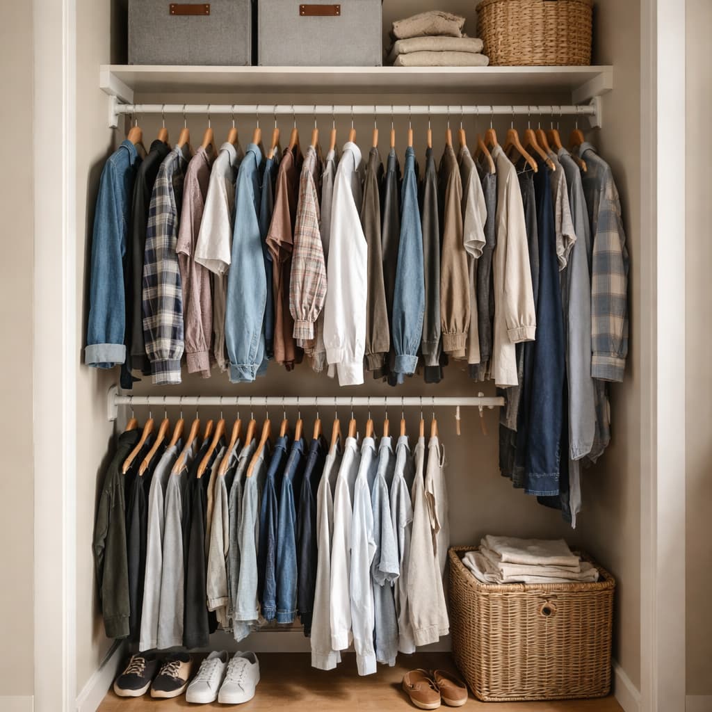 Hay hábitos sencillos que ayudan más de lo que parece. Preparar la ropa del día siguiente evita rebuscar cada mañana. También es útil limitar un poco la cantidad de prendas, algo parecido a un armario cápsula, aunque sin hacerlo rígido.