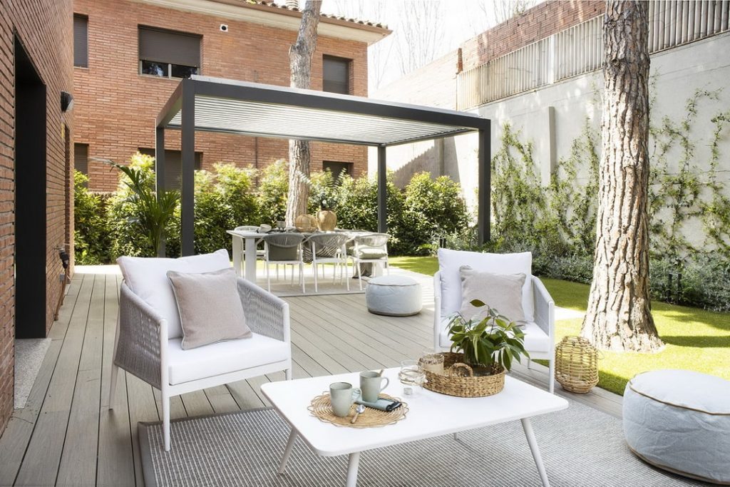 Por ejemplo, una terraza destinada a ser un salón exterior debe tener muebles cómodos y duraderos que resistan las inclemencias del tiempo, así como elementos que aporten calidez en invierno y frescura en verano.
