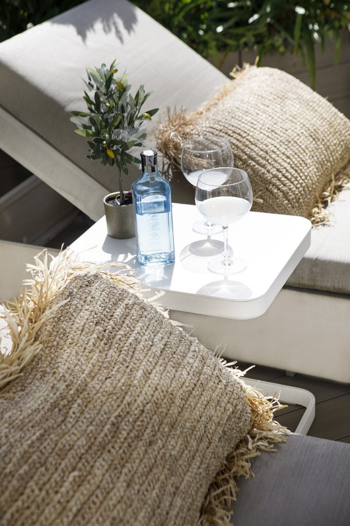 En terrazas más pequeñas, opta por muebles multifuncionales que ahorren espacio, como mesas extensibles o asientos que sirvan también para tumbarse. Además, considera el uso de muebles plegables o apilables que puedas guardar cuando no los necesites, optimizando así el espacio disponible.